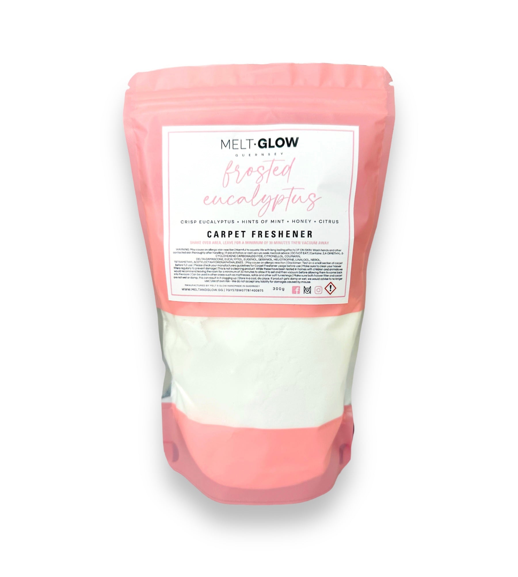 Our Carpet Fresheners are mostly made up with Sodium Bicarbonate which is an amazing deodoriser, meaning it wont just cover up any bad smells, it will help to eliminate them.
